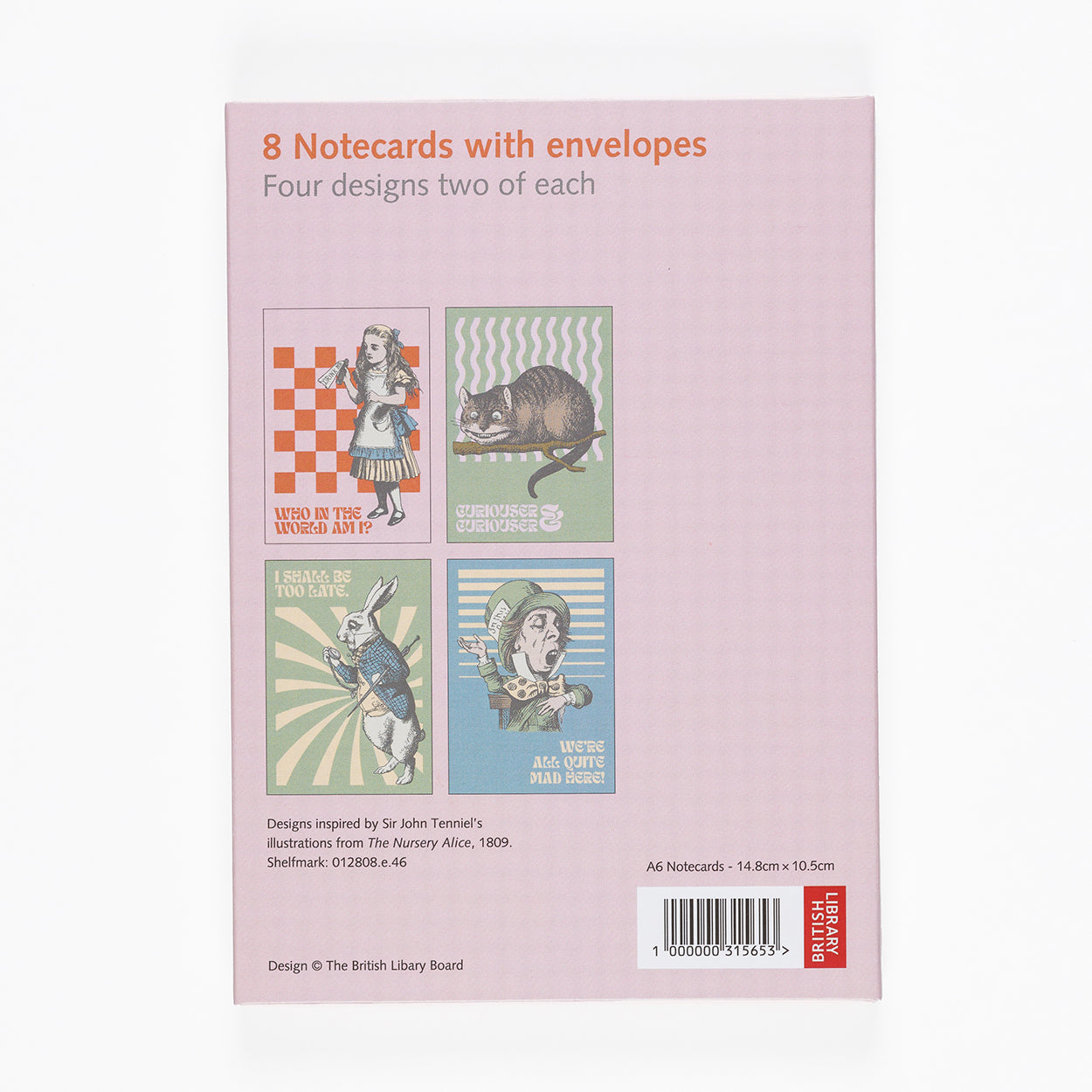 Get ready to be transported to Wonderland with Alice's Adventures Notecards! Each pack includes eight cards, featuring four unique designs inspired by Sir John Tenniel's illustrations of your favourite characters. Complete with white envelopes, these cards are perfect for sending out whimsical messages to friends and family.