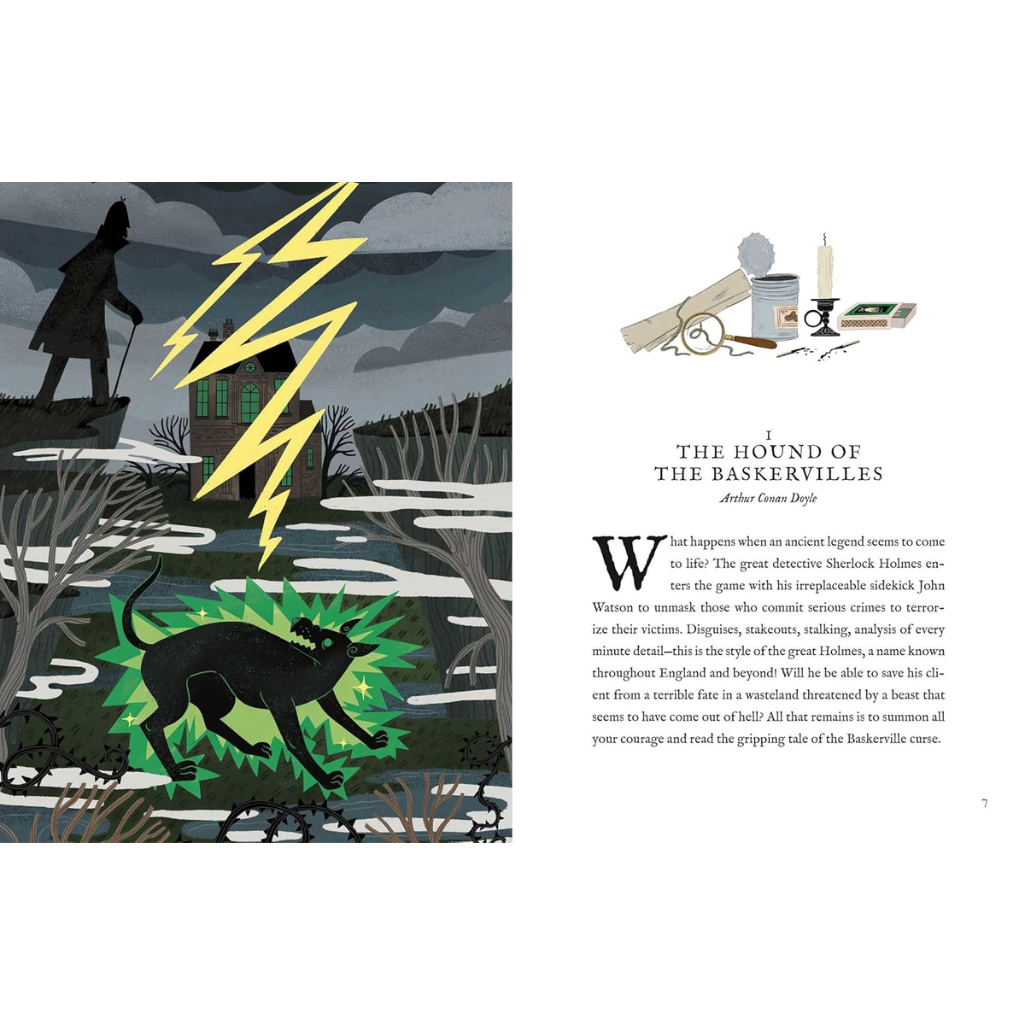 Step into the world of timeless mysteries with Classic Detective Stories, an illustrated collection of 10 beloved detective tales, expertly re-imagined for young readers. Featuring iconic mysteries from the likes of Sherlock Holmes, this collection invites children to embark on thrilling investigations and unravel intriguing mysteries. Lia Visirin’s vibrant illustrations bring each story to life, creating an immersive experience for young mystery enthusiasts and fostering their love for classic literature.