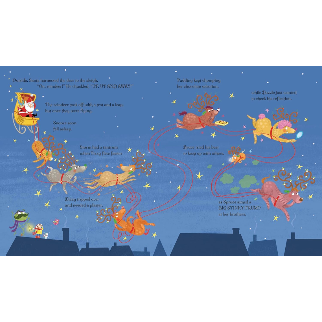 His reindeer are in bed with Antler Flu and without them, he can't deliver his presents on time. But growing well-behaved reindeer isn't as easy as it seems. . . and before long the mischevious creatures have created a rather MERRY MESS!