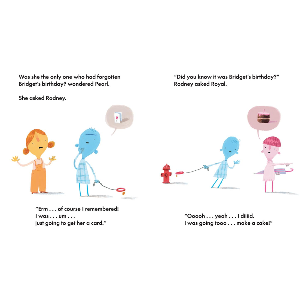 It's Bridget's birthday, and she thinks it would be fun to spend the day with friends. But Royal has places to go, Rodney has to see a man about a dog, Regis has to wash his hair and Pearl has a list of items she needs to cross off as quickly as she can. Bridget's friends are all too busy to hang out!
