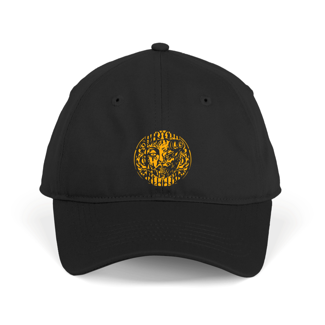 100% Organic Cotton Cap with Recycled Plastic Peak, Recycled Polyester Thread and adjustable YKK Metal buckle. DTF Printed.