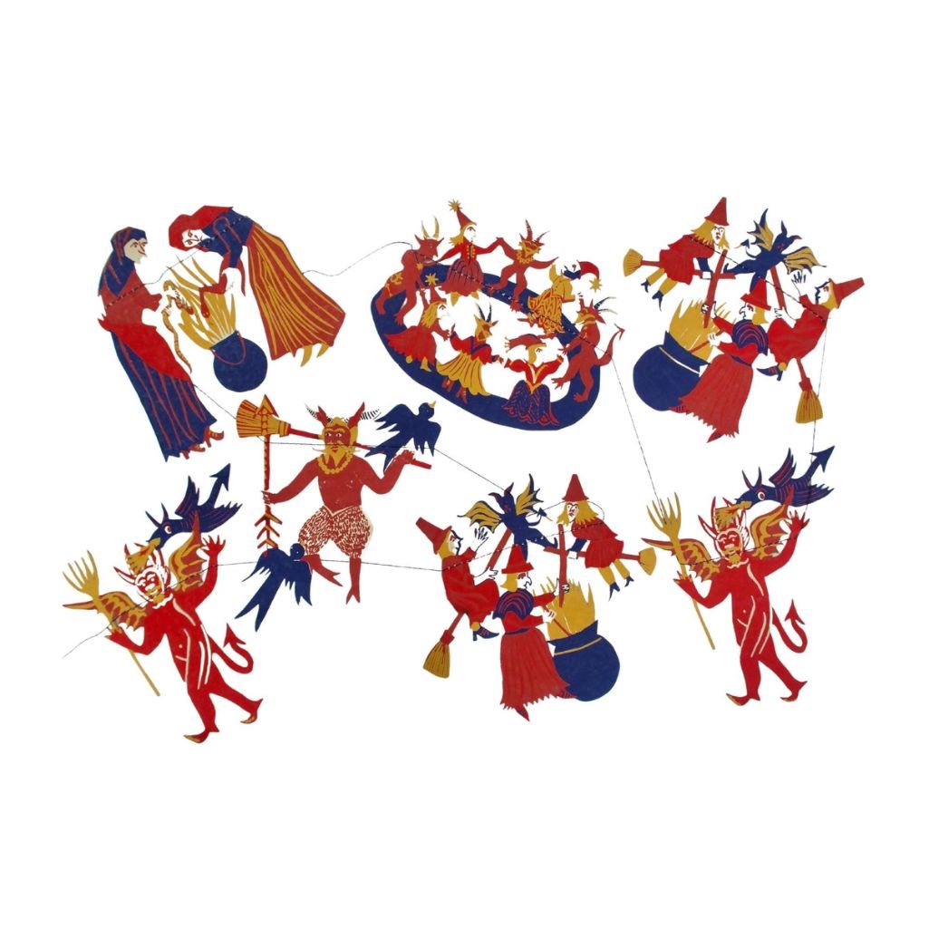 Inspired by medieval woodcuts of witches burned at the stake, this garland pays homage to defiance and female power.