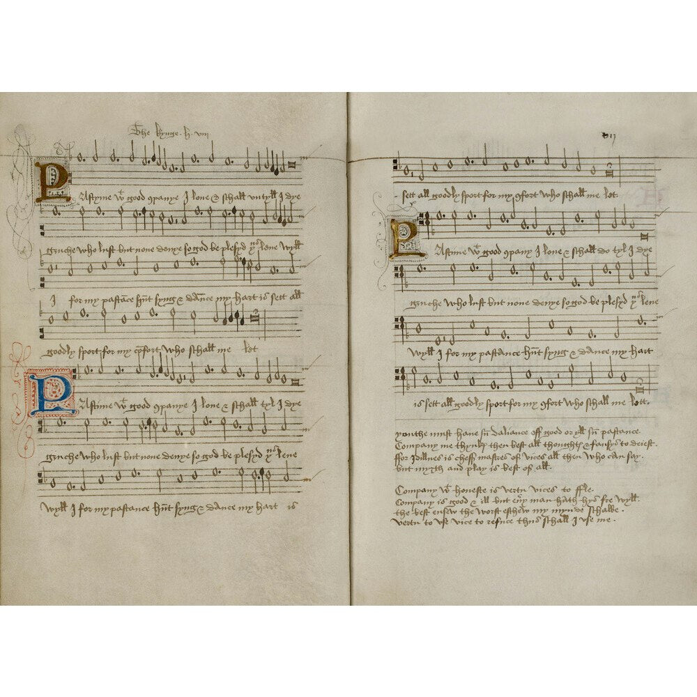 Musical notation from the Henry VIII Manuscript, circa 1518. Add. MS 34294, ff.14v - 15.