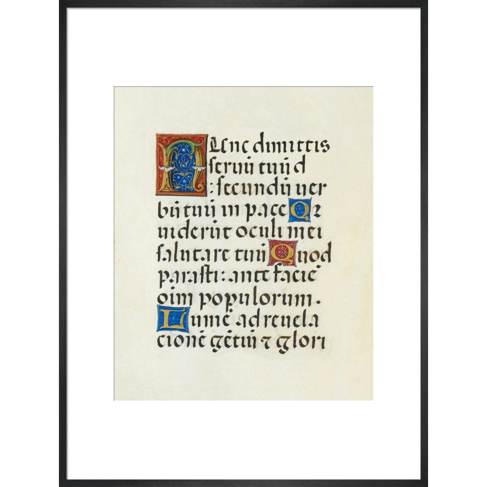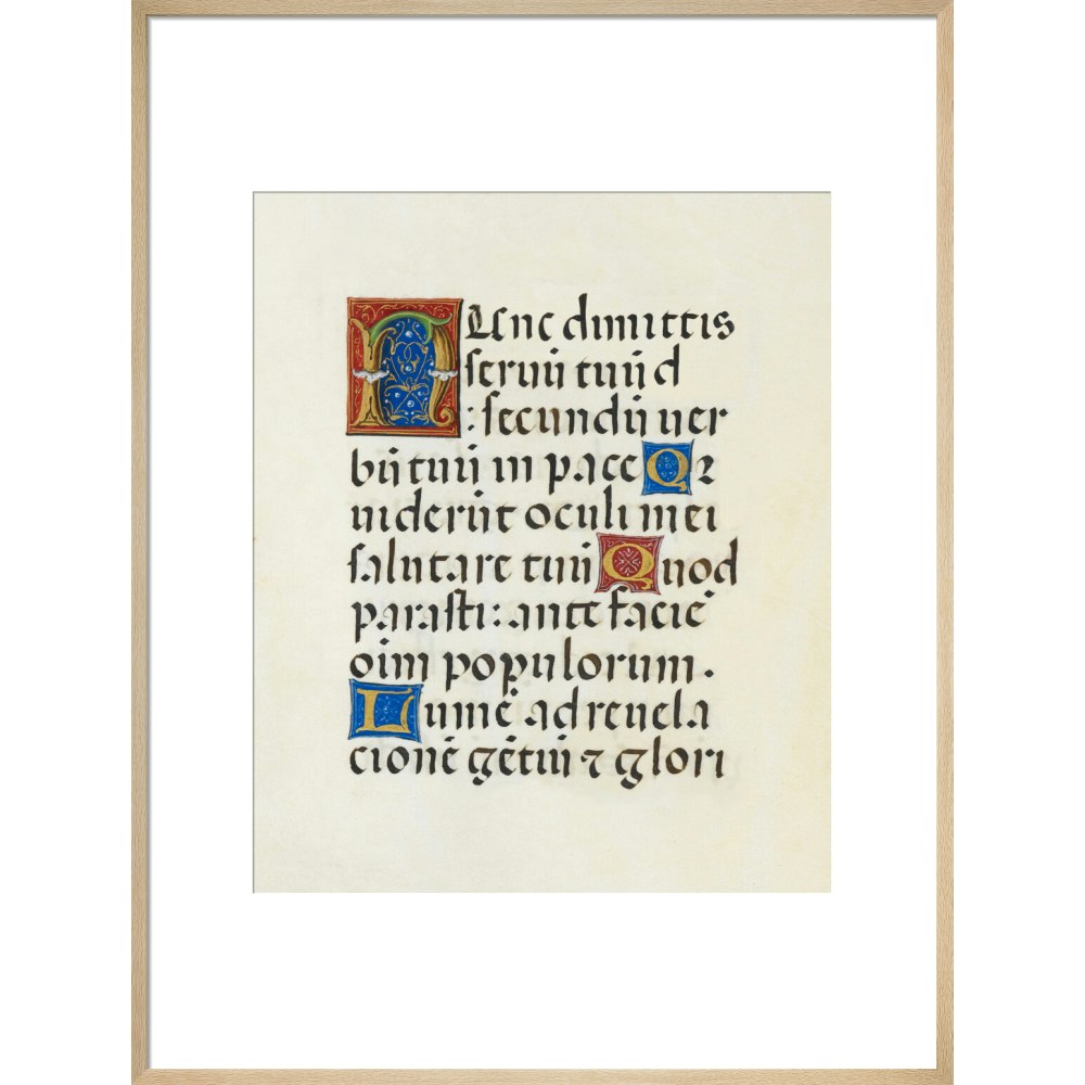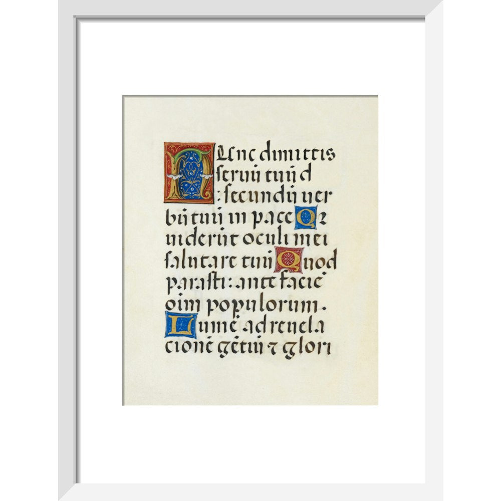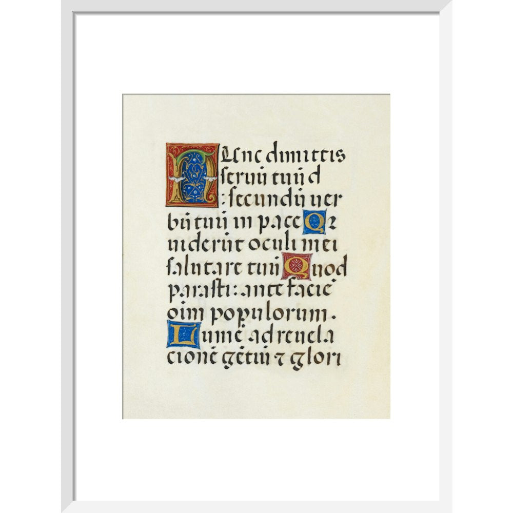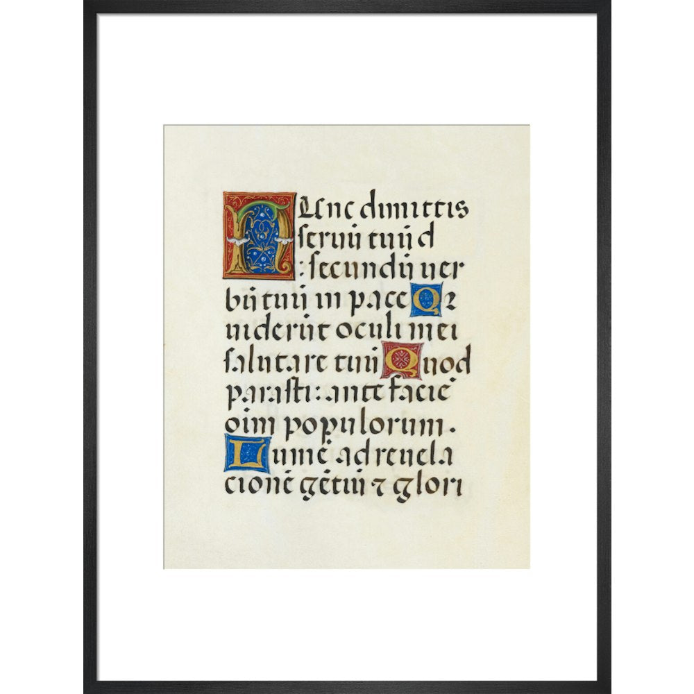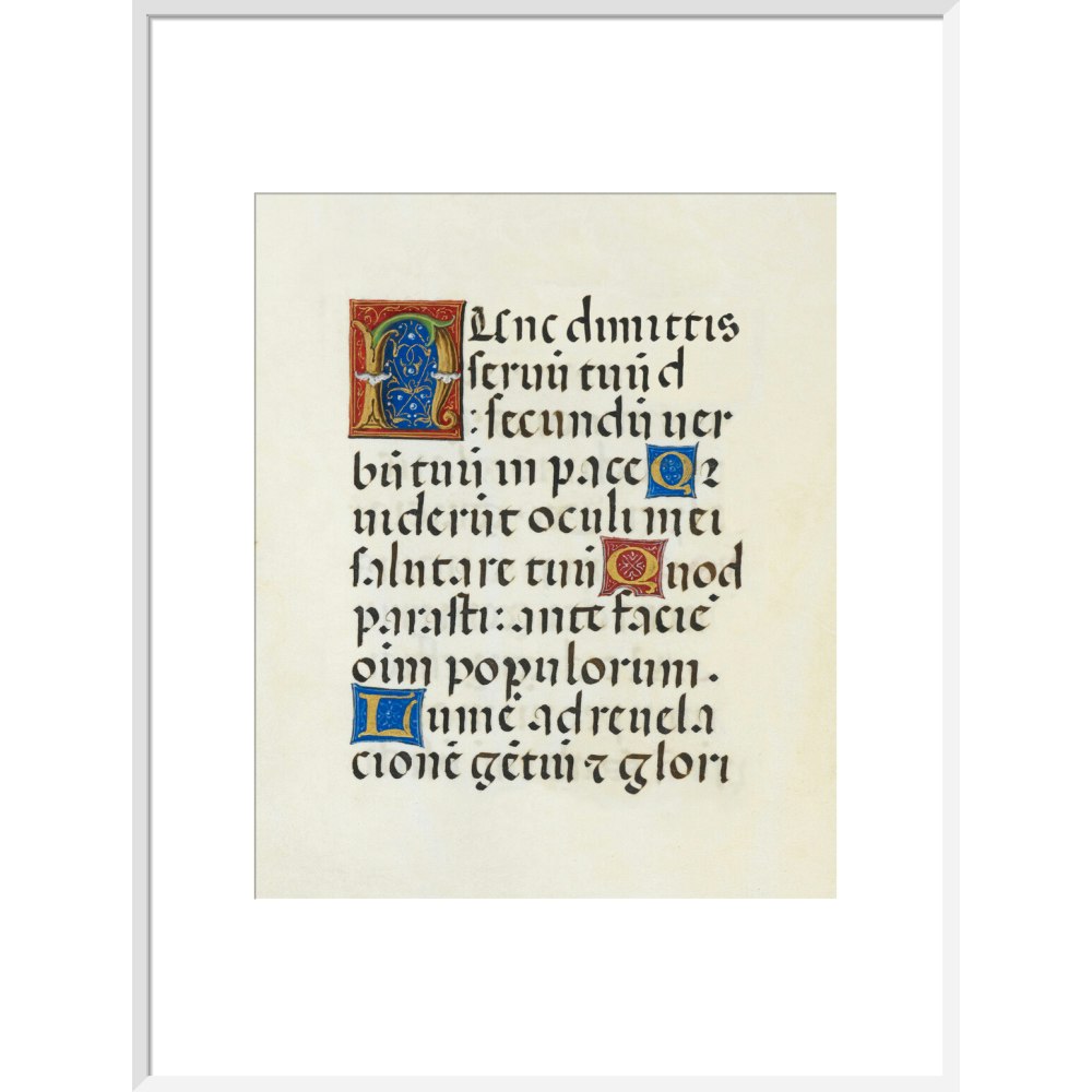 A text page from the Hours of the Virgin beginning Nunc dimitti, from the Sforza Hours, circa 1490. Add. MS 34294, f.129v.