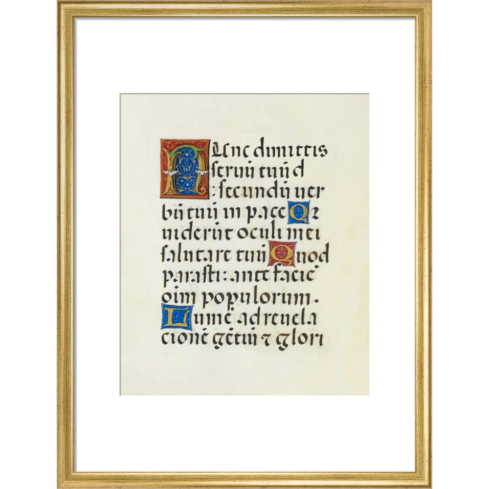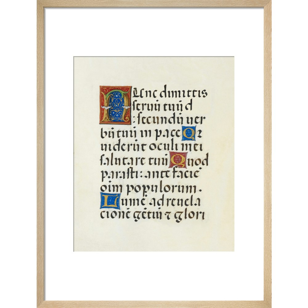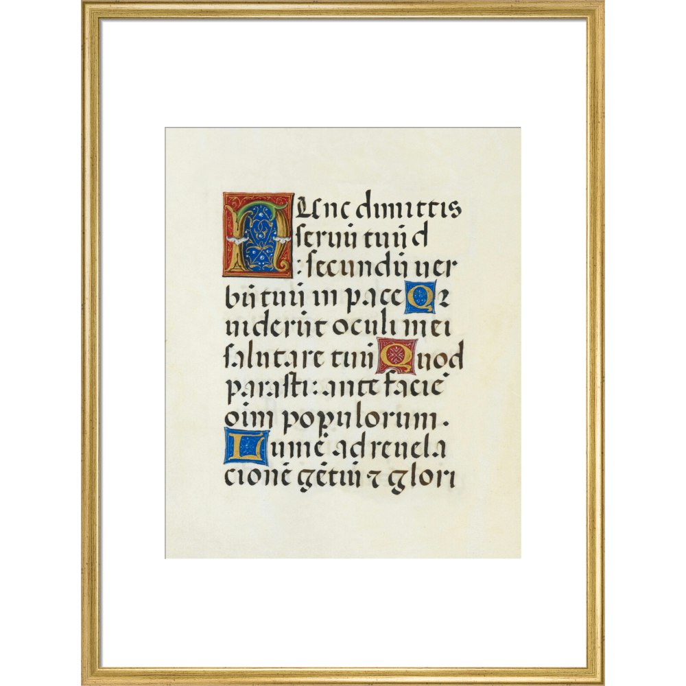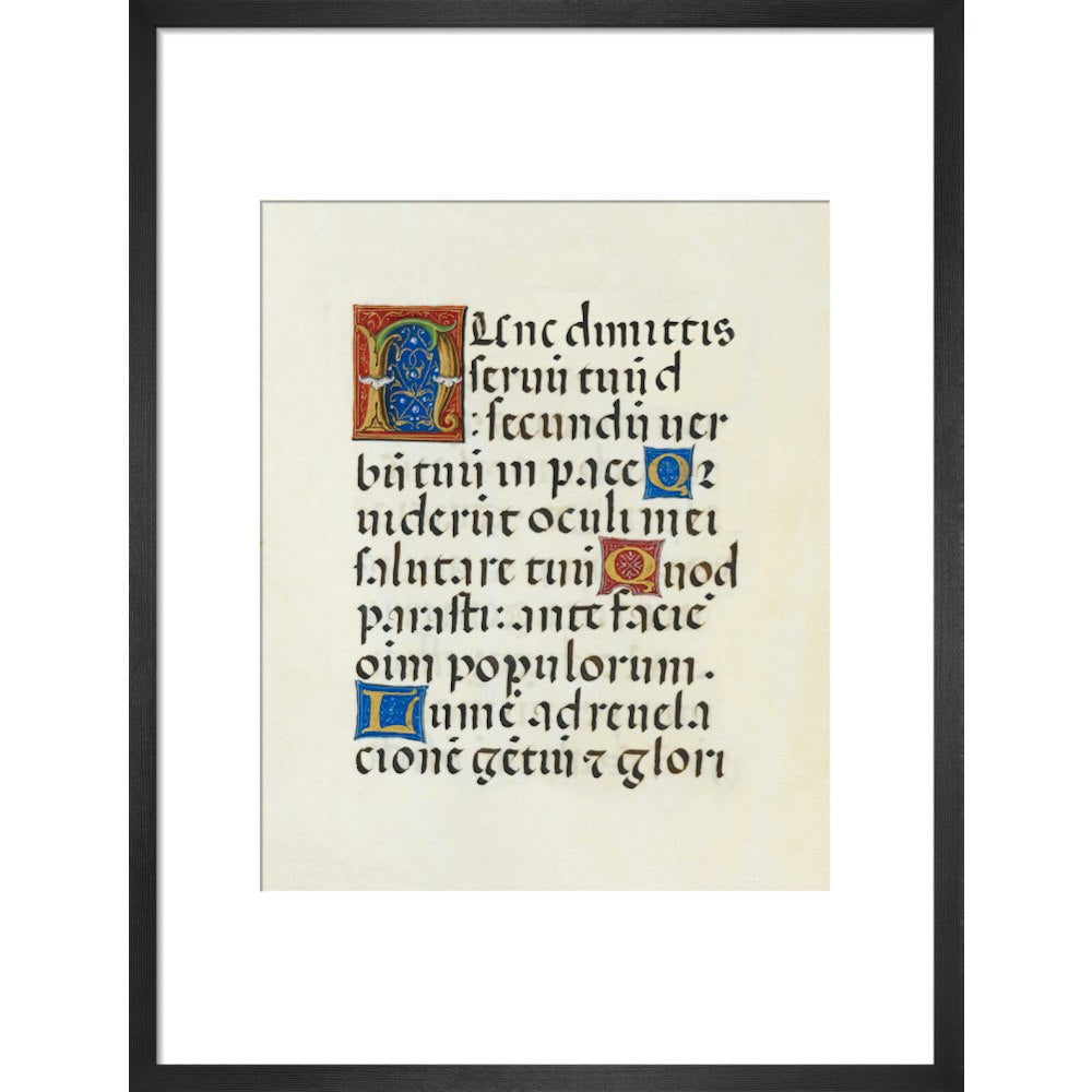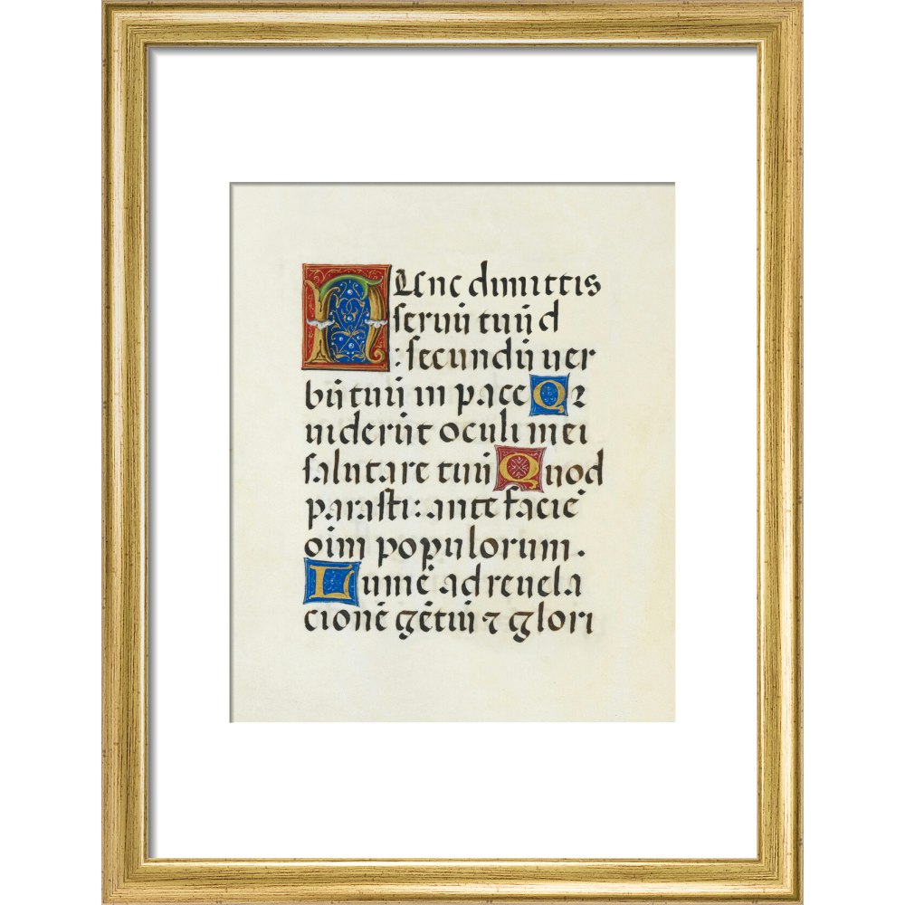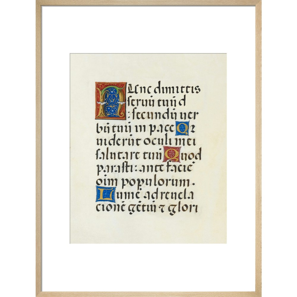 A text page from the Hours of the Virgin beginning Nunc dimitti, from the Sforza Hours, circa 1490. Add. MS 34294, f.129v.