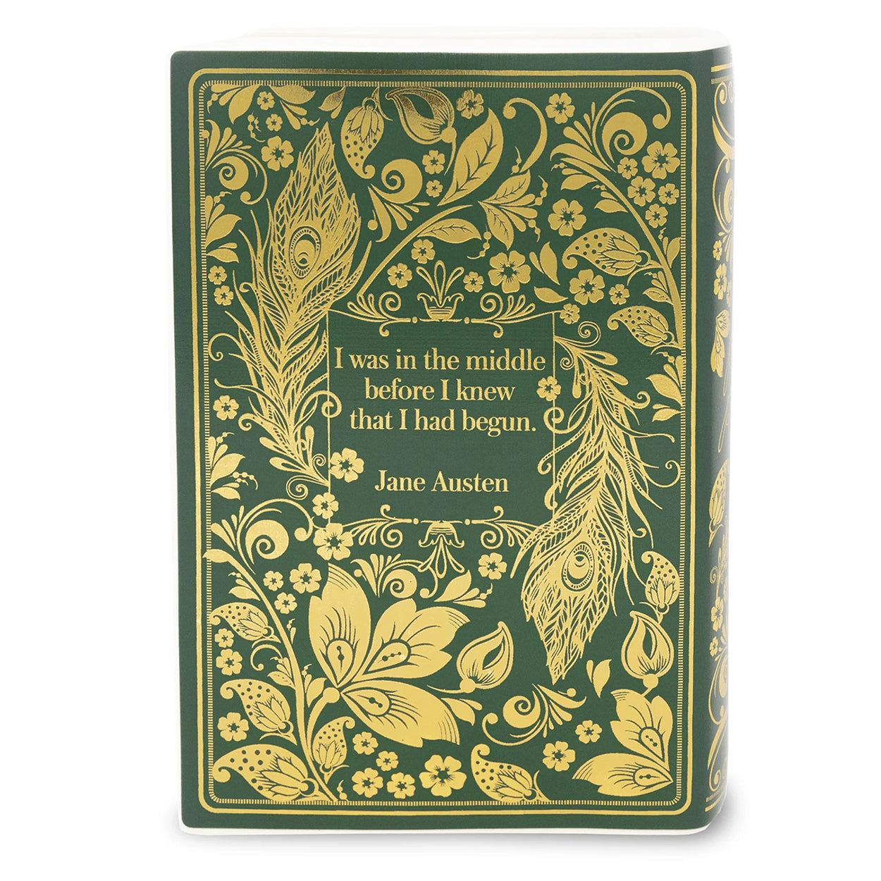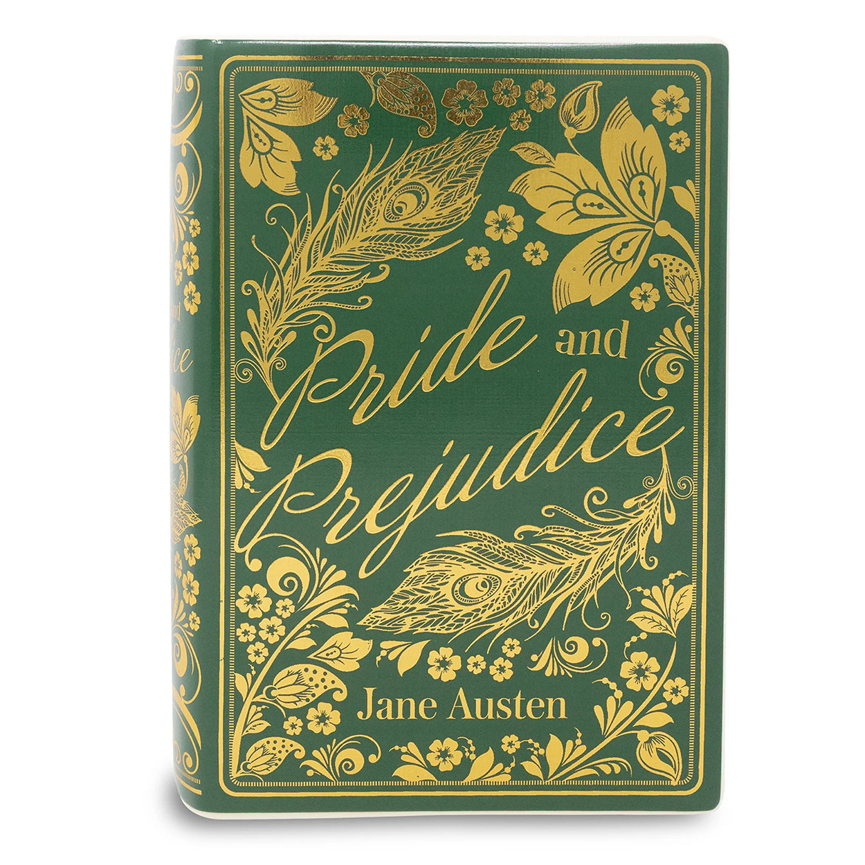 The perfect piece for any book lover's space! Designed to mimic a hardcover book, the Pride and Prejudice vase features sculpted pages, with a wide top opening for flowers, desk supplies, utensils, and more. The cover features art inspired by Jane Austen's beloved novel Pride and Prejudice, and is guaranteed to add a touch of classical and bookish charm to any space.