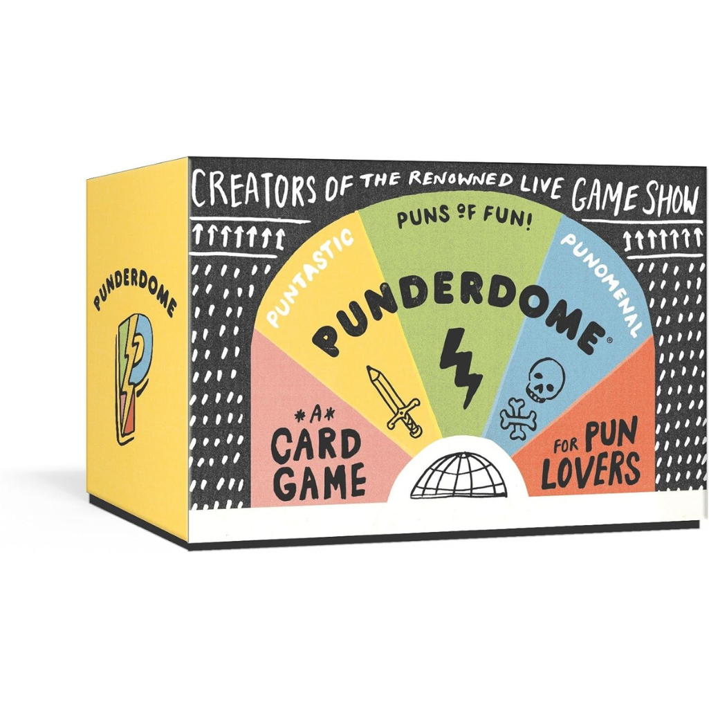 Unleash your wordplay wizardry with Punderdome, the hilariously punny card game that will have everyone groaning with delight! This complete kit includes 200 double-sided cards, mystery prize envelopes, drafting pads, and everything needed for 3+ players to engage in epic pun battles. Perfect for game nights, parties, or anywhere wit and wordplay are welcome!