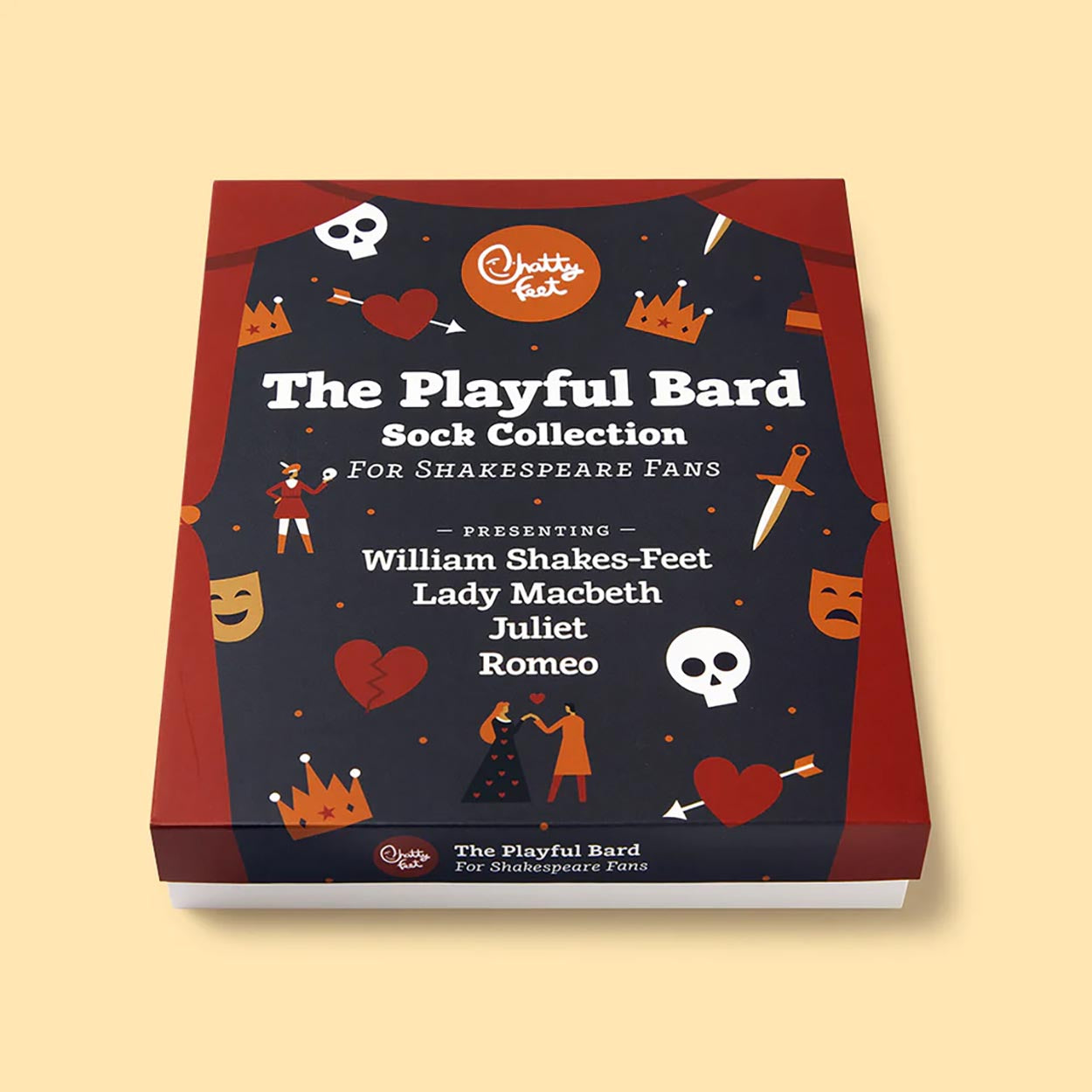 Get ready to put on the performance of a lifetime. Whether you’re treading the boards or trying to upstage your fellow thespians, there are no understudies in our Shakespeare-inspired sock collection. This sock set features William Shakes-Feet, Lady Macbeth, Romeo and Juliet.
